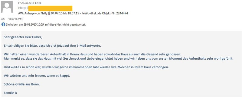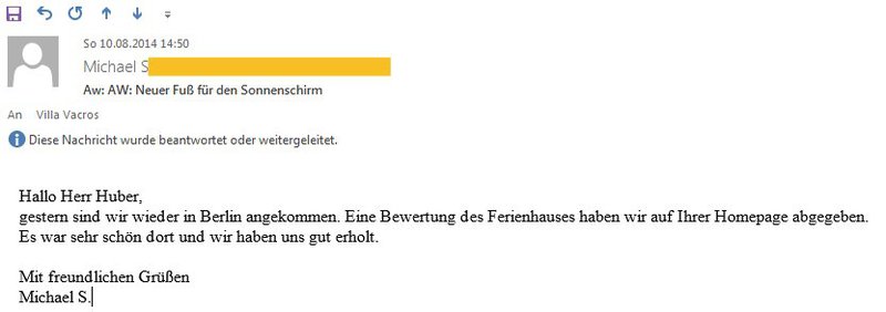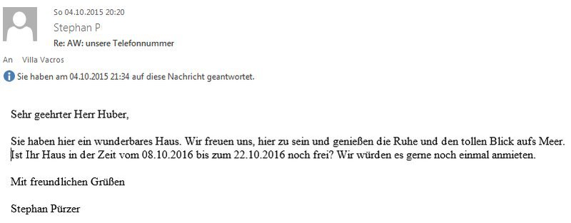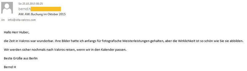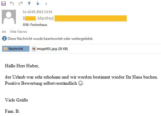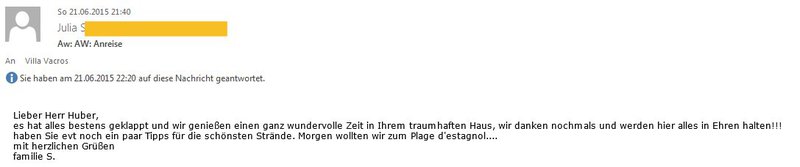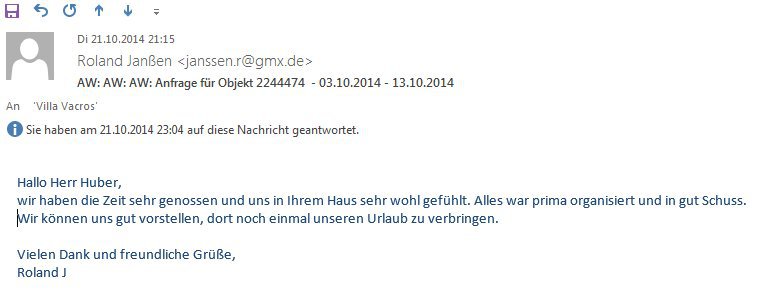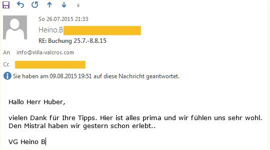 Unten aufgeführt Kommentare unserer bishierigen Urlaubsgäste